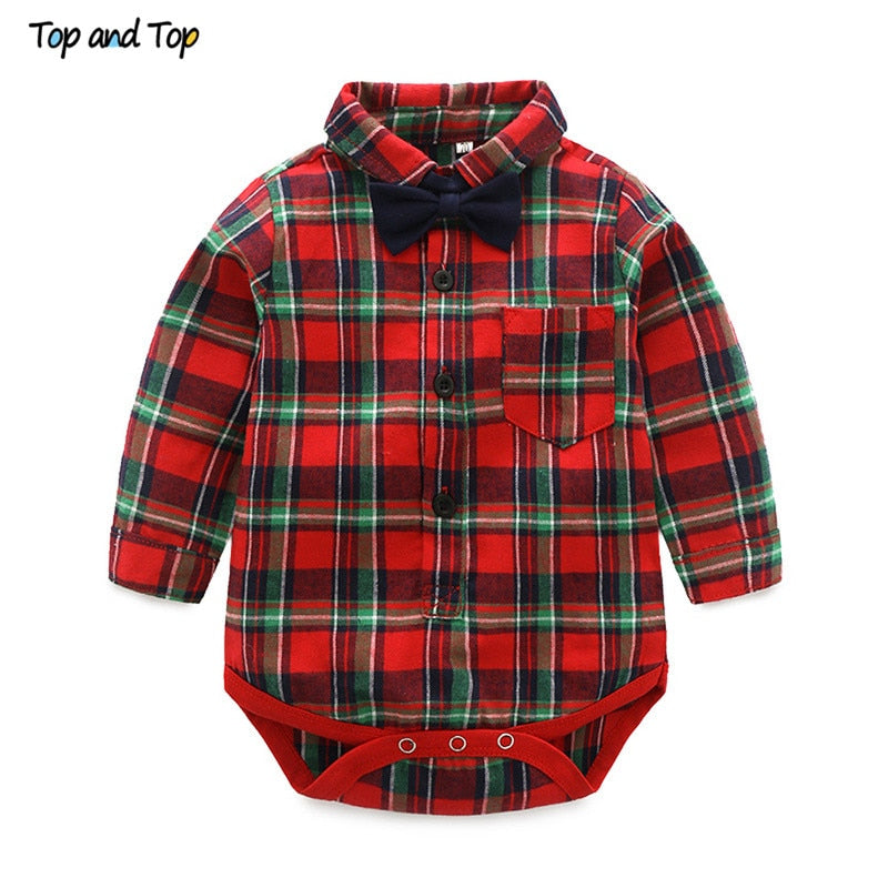 Brand Name: top and top Material: COTTON Style: Fashion Model Number: 0126 Gender: Baby Boys Pattern Type: Plaid Collar: Button Up Collar Sleeve Length(cm): Full Fit: Fits true to size, take your normal size Department Name: Baby Item Type: Bodysuits